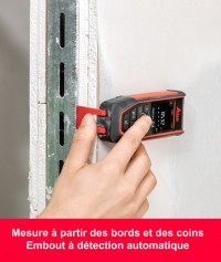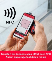 Le Leica DISTO D2 impressionne avec une portée de 150 mètres et de nouvelles fonctions innovantes. Grâce à la fonction Smart Room, vous pouvez créer des plans de pièces en très peu de temps. Le transfert des données de mesure dans l'application DISTO Plan est facile et efficace avec la NFC. Avec la détection automatique de sa position, la pièce finale rabattable garantit des mesures ultra précises depuis les bords et les coins, pour éviter les erreurs coûteuses.